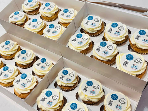 Price from £3.00 per corporate cupcakes including edible printed branded toppers